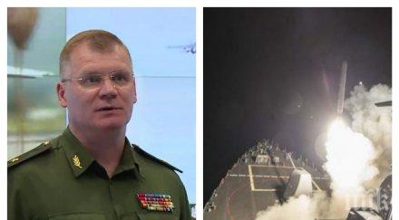 По-рано министерството на отбраната на Русия демонстрира в Москва фрагменти от крилатите ракети на коалицията, свалени от ПВО на Сирия.