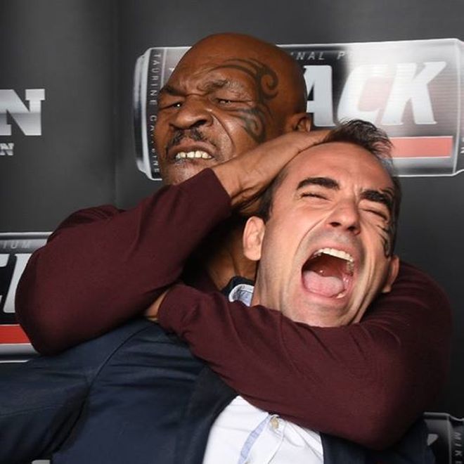Тайсън успя да докопа водещия на "Дарик" Драго Симеонов в гръб и да му направи ключ. Колкото и страшно да звучи това, кадърът всъщност вероятно е нагласен така, че Драго да изглежда беззащитен в ръцете на идола си.