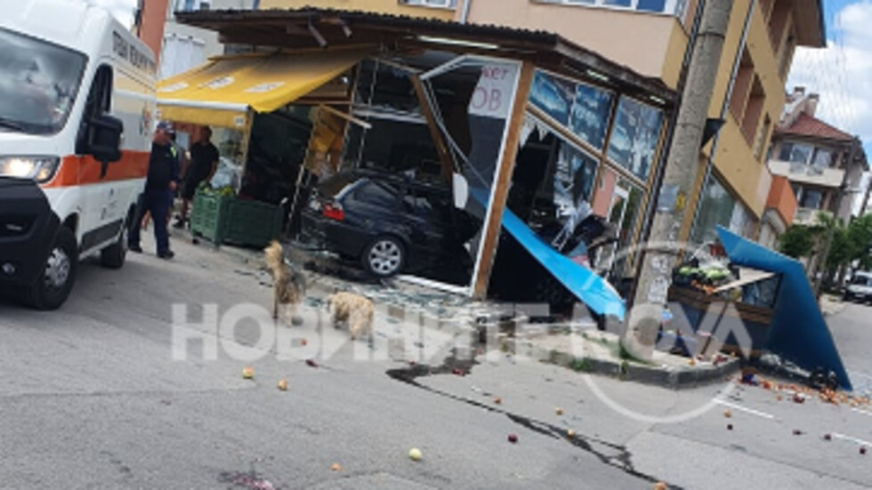 Автомобил влетя в магазин за плодове и зеленчуци в Гоце Делчев. За щастие, няма пострадали хора.