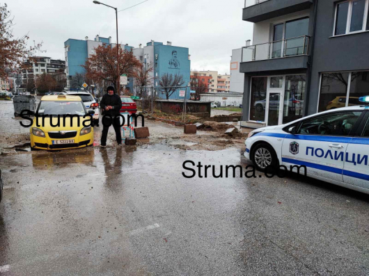Таксиметров автомобил пропадна в голяма дупка на улицата край новострояща се кооперация в благоевградския квартал "Еленово". Инцидентът стана тази сутрин в района на заведение "Шатрата", съобщава "Струма"ком". На място пристигнаха екипи на полицията, които ограничиха движението.
