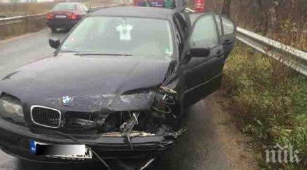 На прав участък са се ударили влекач и лек автомобил. От силния удар и двете превозни средства са в канавките.