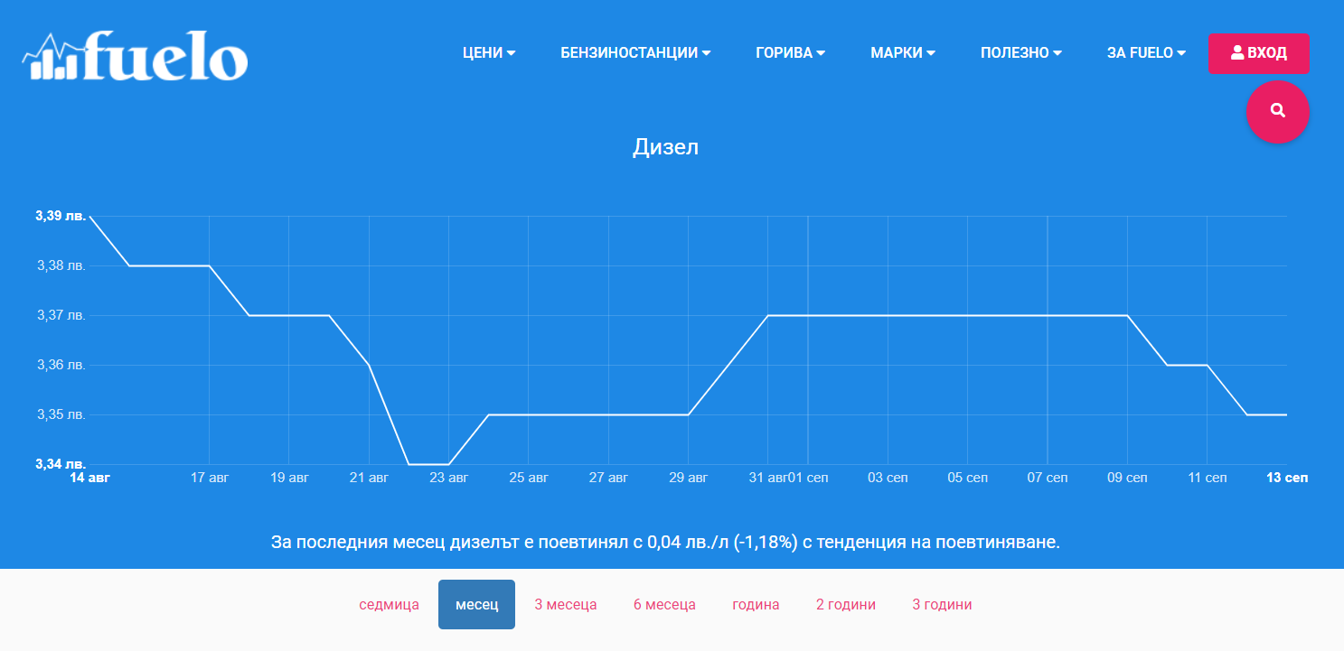 При дизела намалението за един месец е с малко над 1% или едва с 5 стотинки.