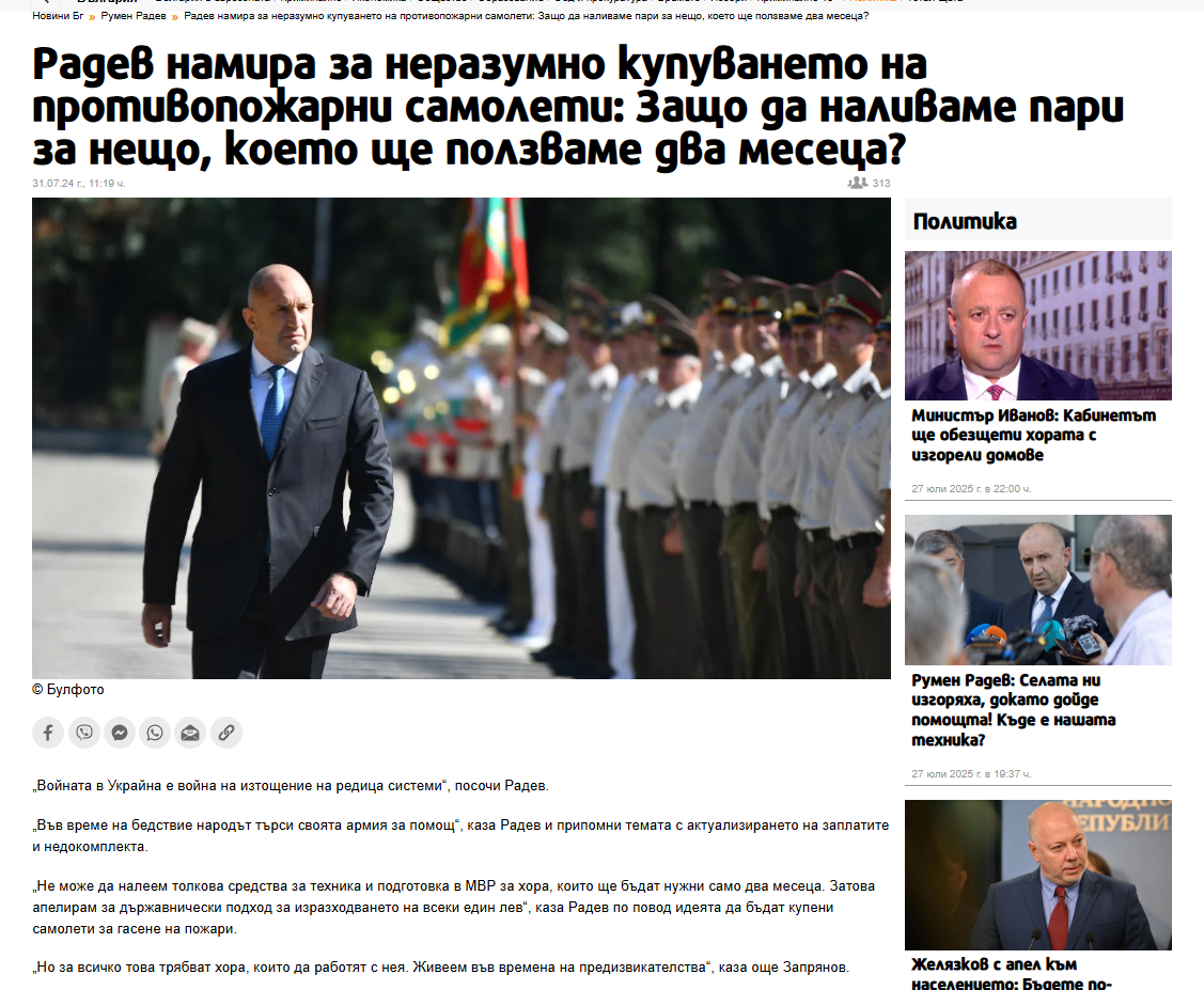 ТОВА ВЕЧЕ ПРЕЛЯ ЧАШАТА: Кога е искрен Радев - когато обвинява кабинета в безхаберие, че не купува техника срещу пожарите, или когато критикува депутатите, че искат скъпи противопожарни самолети (ФАКСИМИЛЕТА/ВИДЕО)
