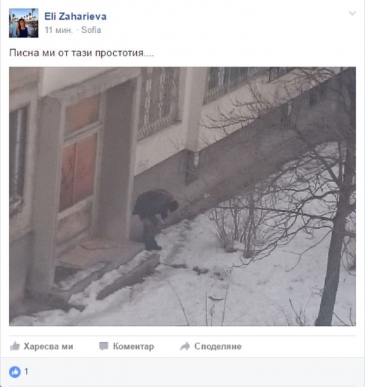 "Писна ми от тази простотия...", пише в коментар за кадъра във Фейсбук.
