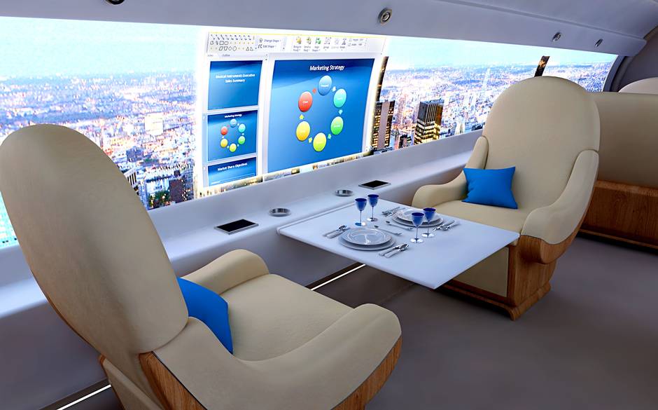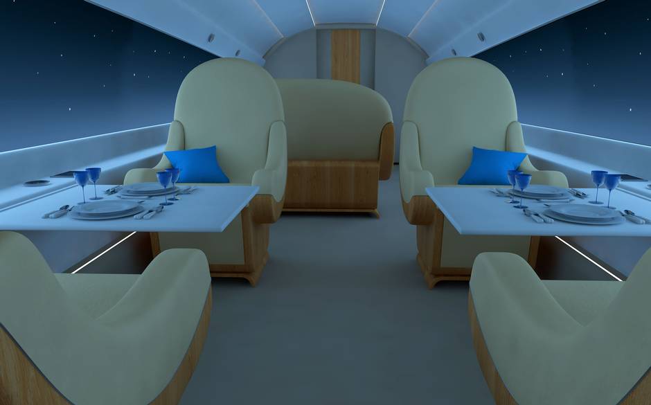 Без познатите малки овални илюминатори пасажерите ще се чувстват много свободно и уютно, разказват създателите. Заради липсата на прозорци ще бъдат намалени и допълните опорни конструкции и части, като по този начин ще се намали съпротивлението, което от своя страна ще съкрати времето за пътуване и разходите за гориво.