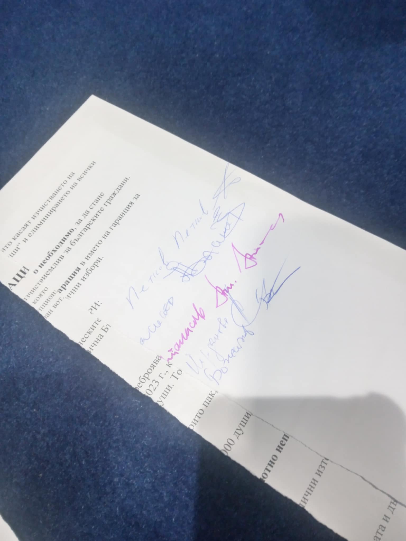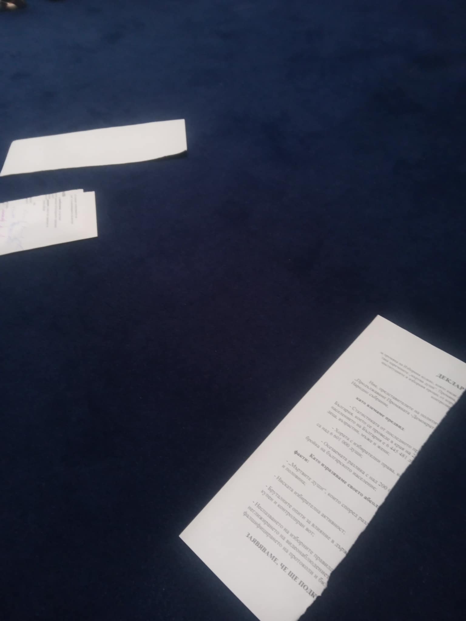 "В началото на този парламент ние поискахме от тях да подпишат декларация за изчистване на избирателните списъци от мъртви души. На комисията онази вечер ППДБ гласуваха "против" изчистването на мъртвите души от списъците. Ето я декларацията, която те подписаха тогава", заяви Йорданов, като показа декларацията, която ППДБ са подписали, след което демонстративно я скъса пред медиите.