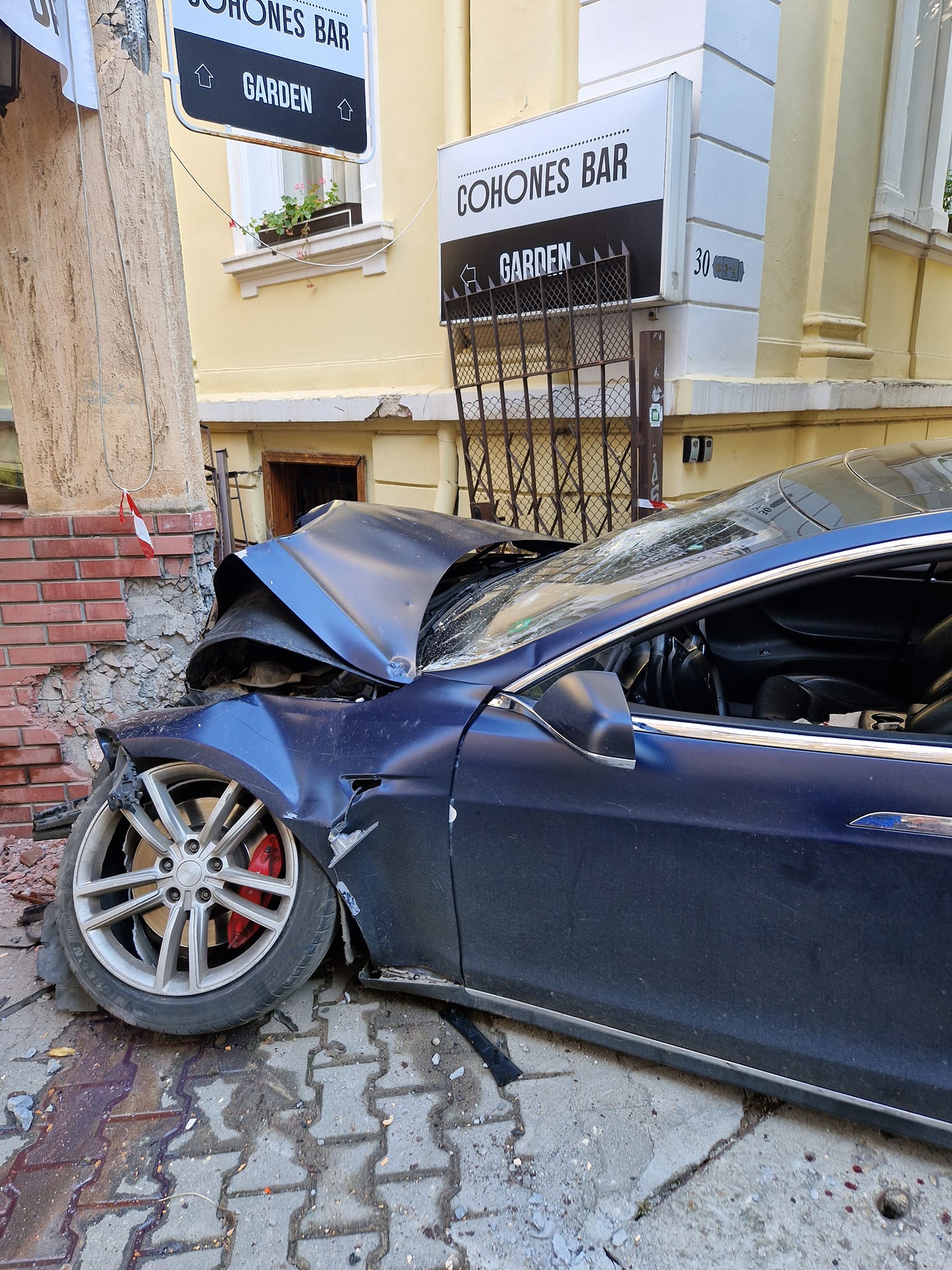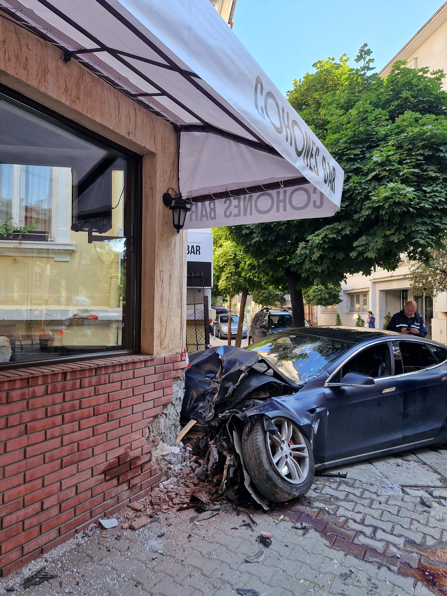 "Този юнак с Теслата, към 4 ч тази сутрин е профучал в насрещното по ул Цар Иван Шишман, срещнал е челно бара на ъгъла с ул Хан Крум, счупвайки предното стъкло с главата си и е изчезнал." Това съобщи на страницата си във Фейсбук кметът на район Средец Трайчо Трайков.