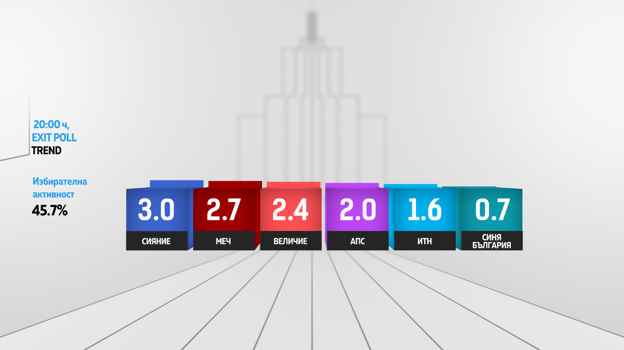 В 52-рото Народно събрание най-вероятно ще има депутати от шест партии. Това сочат резултатите от exit poll-а на социологическа агенция „Тренд” към 20.00 ч., предава Нова.