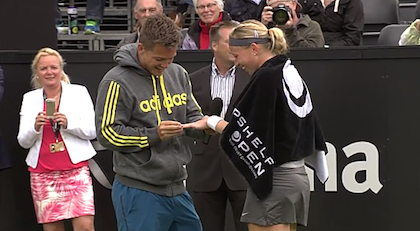 Трогателно: Тенисисти се сгодиха на корта след победа на дамата (снимки + видео)