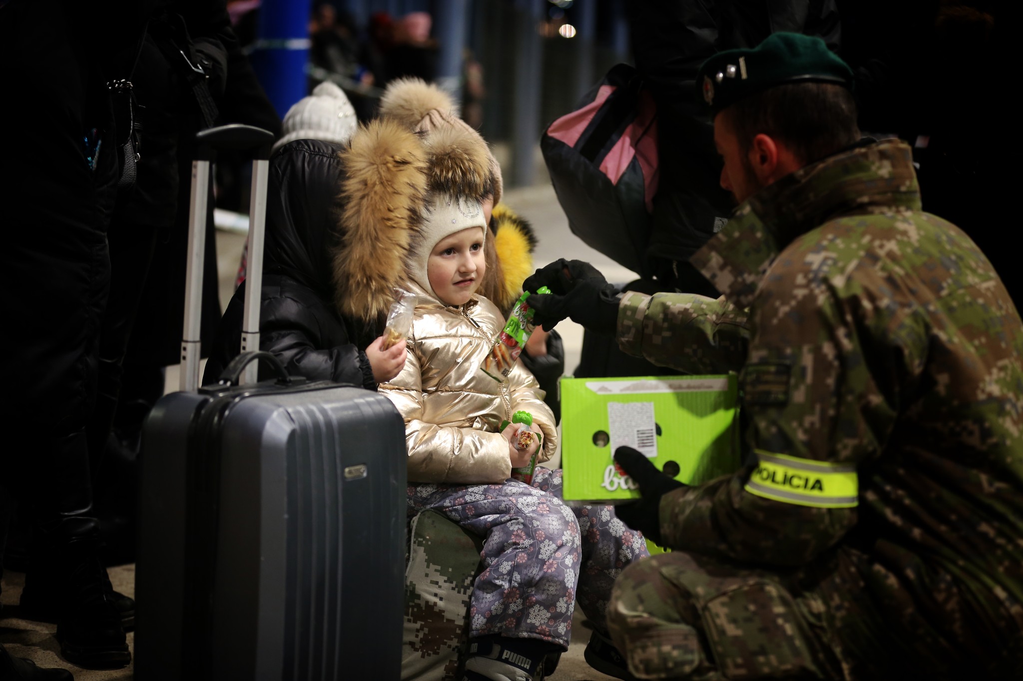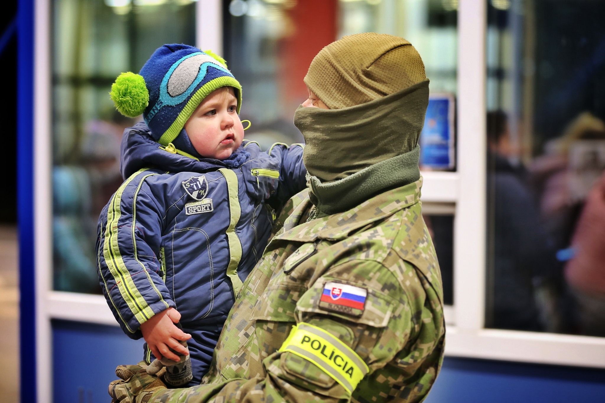 "24 часа в денонощието хора, напускащи домовете си, влизат на наша територия. Хора, бягащи от войната, са изминали стотици километри и са прекарали часове под открито небе, докато достигнат  безопасно място. Полиция, военнослужещи, пожарникари, спасители и доброволци са постоянно готови да помогнат на тези хора. Веднага щом пристигнат на наша територия, те са посрещнати с топъл чай, освежаващи напитки или готвена храна. На границата има отопляеми палатки", съобщава полицията на Словашката република.