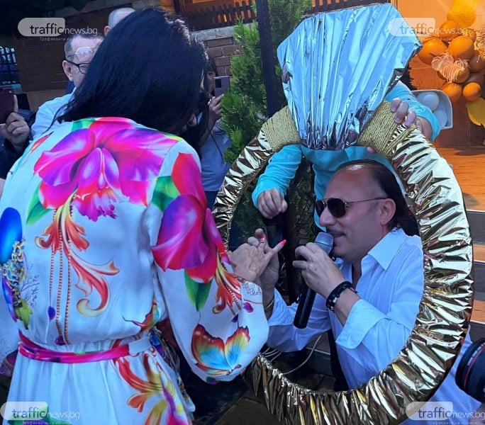 Шумният банкет, който се състоя в пловдивското село Катуница, където фамилията притежава голям имот, едва събра всички поканени гости. Бъдещата госпожа Стoева изглежда сюрпризирана от подготвената изненада. Пред десетки гости и приятели Стоян Стоев коленичи и постави главата си в специално направен мащабен годежен пръстен и по този начин иска ръката й.