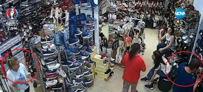 Изрусена млада жена, добре облечена задига скъпи телефони в центъра на София. Крадлата е засечена от камерите на магазин за обувки. На видеото, изпратено до Нова телевизия, се вижда как жената се прави, че разглежда щандовете с обувки. Приближава се до момиче, което пробва нов чифт и "небрежно" бърка в чантата й, откъдето задига телефона й.