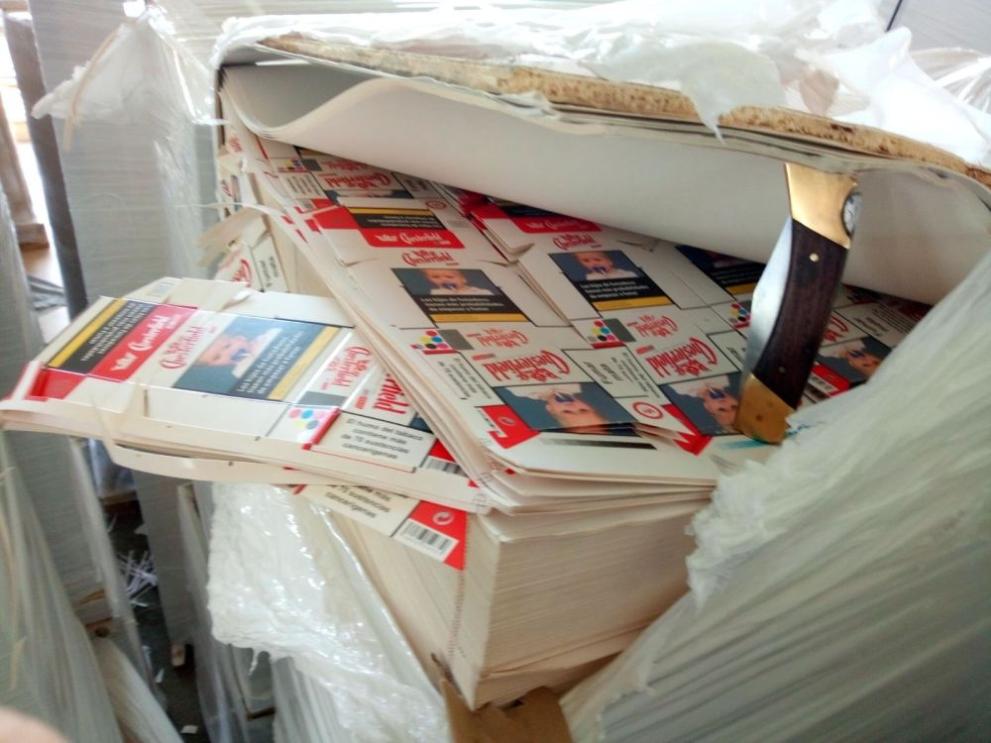 Освен тези 40 палета в хладилното полуремарке са открити и още две палета с по 144 бобини лента за филтри. палетата със заготовките за цигари са фолирани с бяло непрозрачно фолио, без никакви отличителни данни като баркодове, надписи или стикери, даващи информация за техния производител. На всеки от листовете със заготовки има по 20 изрезки на кутии за цигари.