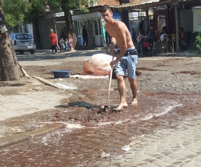 Възмутен пловдивчанин изпрати снимка, направена вчера в града под тепетата и придружена с кратък текст. На нея се вижда проснато по средата на улица мъртво животно и буквално река от кръв.