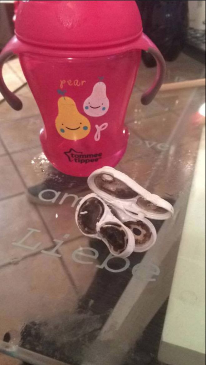 Пауъл помества и снимки на други родители, които правят подобни ужасяващи разкрития относно опасностите в "sippy" чаши за техните деца.