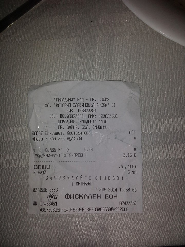 Тогава Цветелина Атанасова минала през магазина на веригата на бул. "Сливница" във варненския квартал "Младост". Искала да напазарува за вечеря и купила около половин килограм печени пресни картофи соте като гарнитура.
