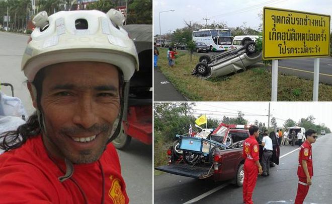 Латиноамерикански велосипедист, кандидат за световен рекорд, намери смъртта си от малък камион в Тайланд. 47-годишният чилиец Хуан Франциско Гилермо от ноември 2010 г. кръстосва земното кълбо с колело. Неговата цел е за 5 години да измине 250 000 километра на 5 различни континента. Подобно постижение все още не е извършено и щеше да влезе в Книгата на рекордите "Гинес", пише столичен вестник.