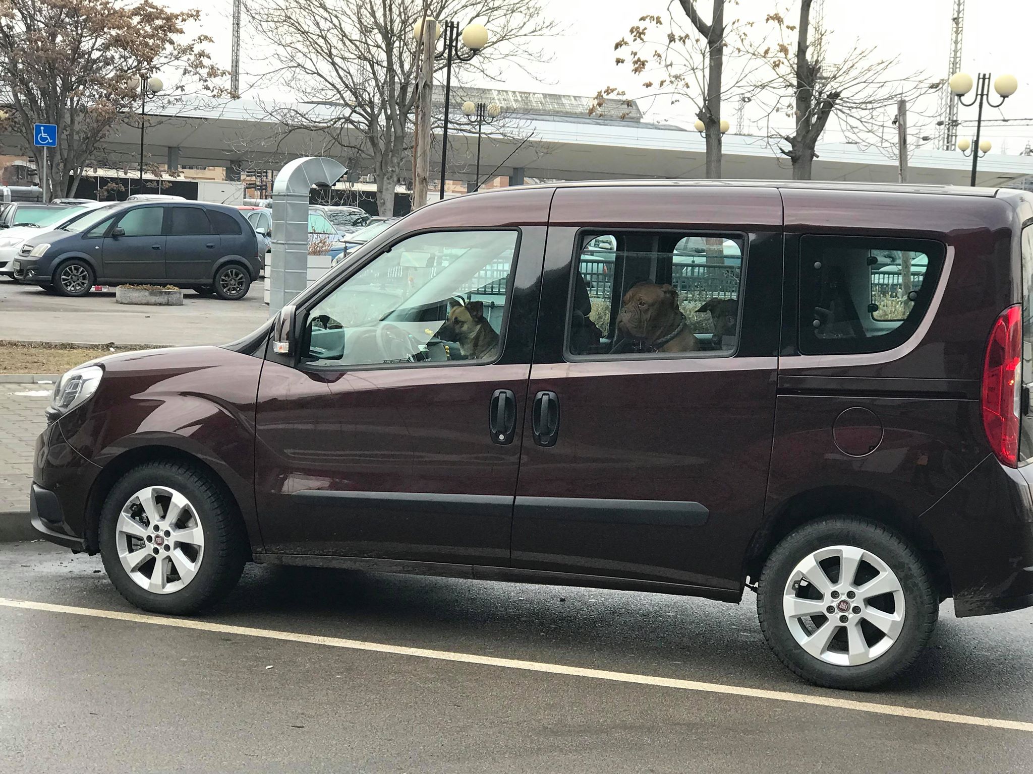 За щастие и спокойствие на минувачите животинките стоят в паркирана кола, а не я управляват, както сме виждали това да се случва неведнъж в кинолентите. Най-вероятно стопанинът им ги е оставил за кратко в автомобила, докато напазарува в близкия хипермаркет.