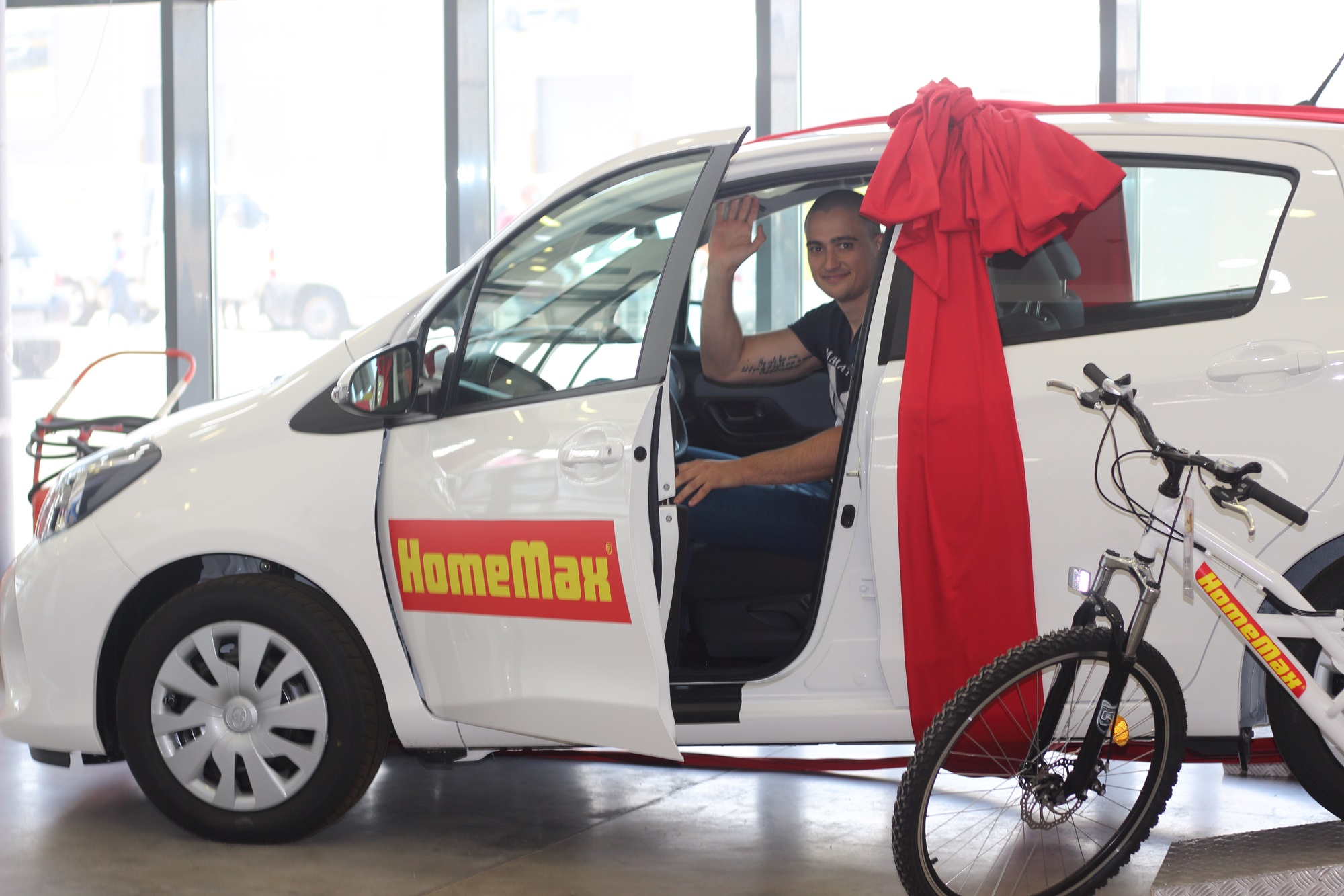 Големият победител в играта на HomeMax „Ела и спечели Toyota Yaris” е посетил магазин от веригата, за да купи обикновена четка и така разбрал за томболата на хипермаркетите, от която спечели чисто новия автомобил. Това разказа самият той в централния офис на HomeMax в София, където му връчиха ключовете за модерната Toyota Yaris.