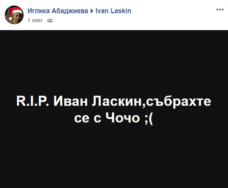 Минути след ужасната вест, че е починал Иван Ласкин, Фейсбук е залят от жалейки за актьора. Негови приятели, почитатели и близки се прощават с него, макар и в интернет. Мнозина споделят, че е бил добър човек, щом си е отишъл на светъл християнски празник като днешния Йордановден, но не проускат да изразят тъга, че не е успял да посрещне имения си ден, който е утре.