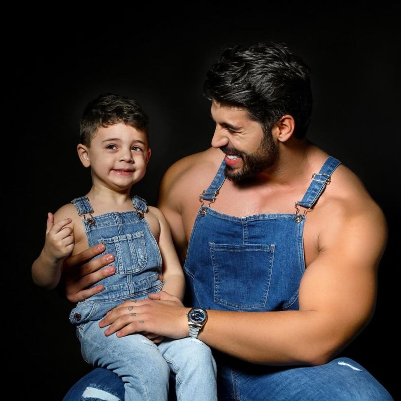 Вместо това застана пред обектива заедно с наследника си. Двамата позираха и с еднакви дънкови гащеризона.