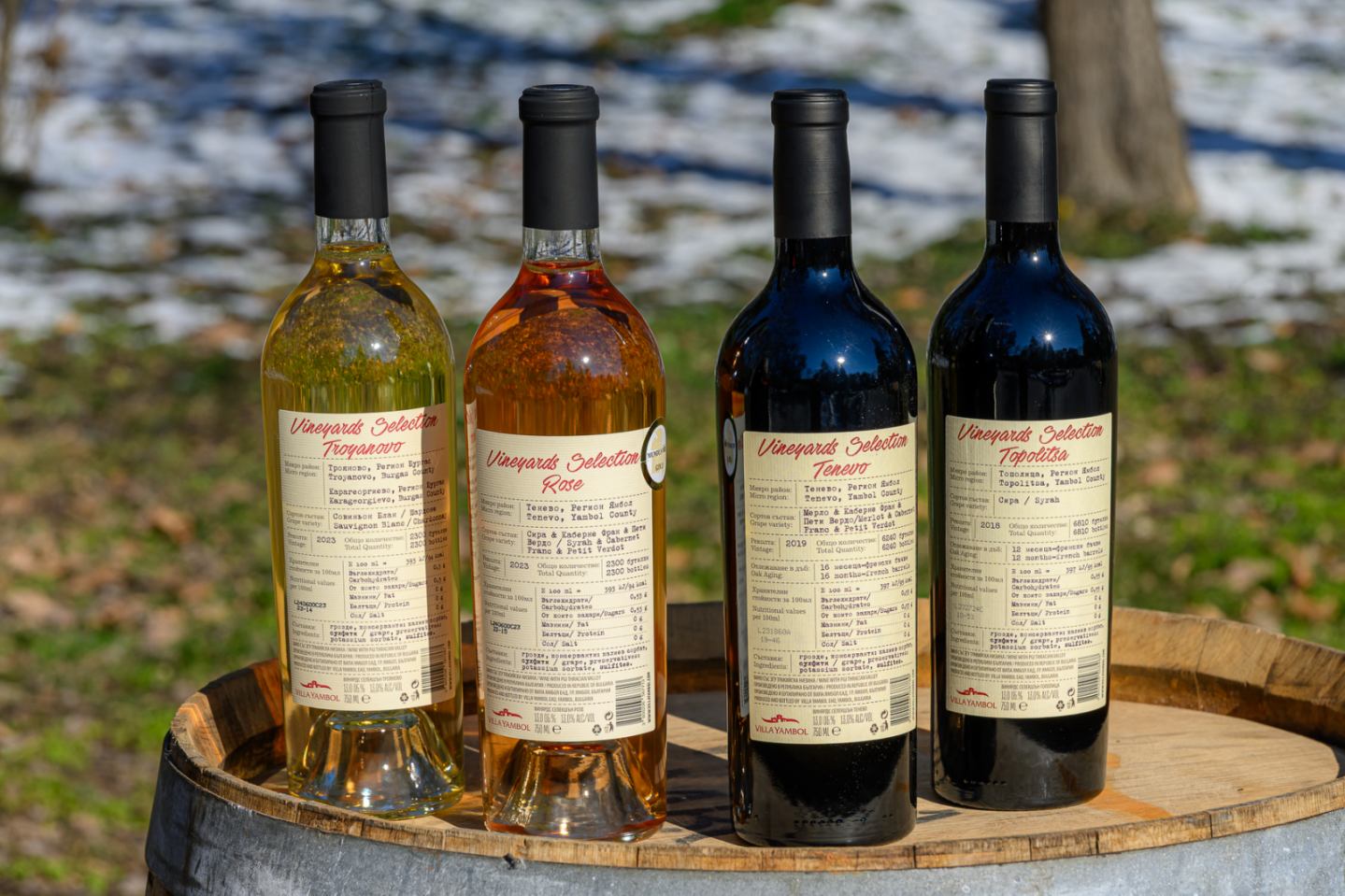 Големите отличия са за Kabile Каберне Совиньон Резерва 2019, както и трите червени вина в най-високия клас на „Вила Ямбол“ – тероарните Vineyards Selection Тополица Сира, 2019, Vineyards Selection Болярово Каберне Совиньон 2016 и Vineyards Selection Тенево от Мерло, Каберне Фран и Пети Вердо 2020. Със злато бяха оценени четири вина на производителя: Kabile Сира Резерва 2019, Kabile Мавруд и Каберне Совиньон 2023, Kabile Совиньон блан и Шардоне 2025 и Kabile Шардоне 2025. Сребро заслужи най-новото попълнение – Villa Yambol Мускат и Юни блан 2025 г.