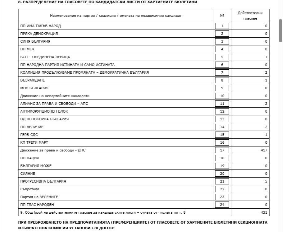 Оказва се, че посрещането на лидера на ДПС никак не е случайно. В село Бабяк Пеевски постига забележителен резултат - 417 гласа от общо 431.