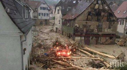 Хеликоптери на германската полоция се включиха в спасяването на хора в засегнатите от наводнения райони, предаде Би Би Си. Вертолети на Бундесвера помогнаха на няколко души да се спасят от природната стихия, която удари южната община Трифтен.