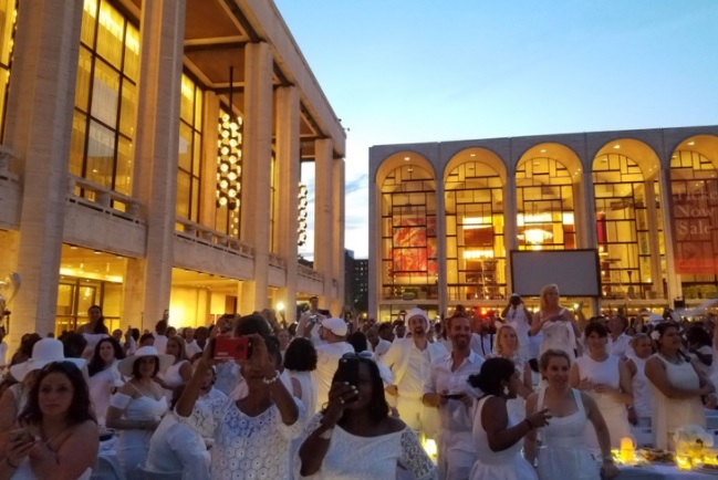 Хиляди хора, облечени в бяло и носещи маси, столове и храна, се стекоха на вечеря на площада пред "Линкълн сентър" в Ню Йорк, съобщава БТА.