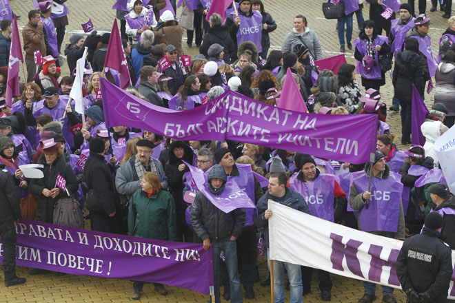 Хиляди синдикалисти от КНСБ излязоха на протест срещу правителството (снимки)