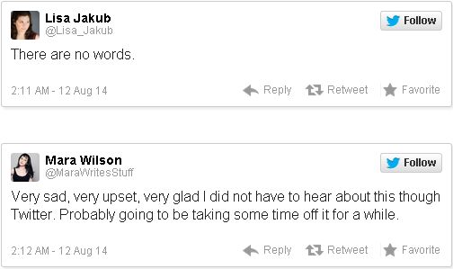 Лиса Джейкъб написа - "Нямам думи", а екранната й партньорка Мара Уилсън добавя - "Много съм тъжна и разстроена, радвам се, че не научих за това (самоубийството) от "Туитър". Най-вероятно няма да ме има известно време".
