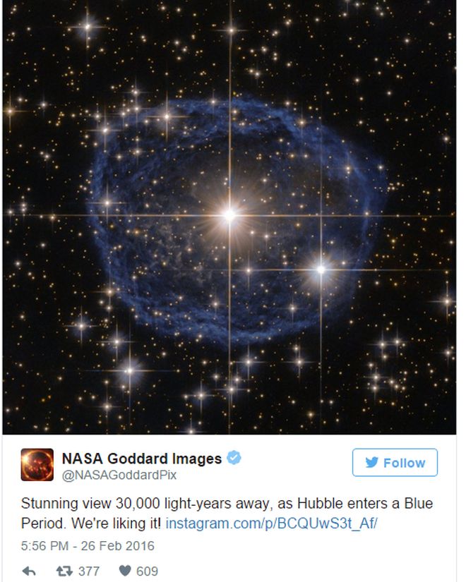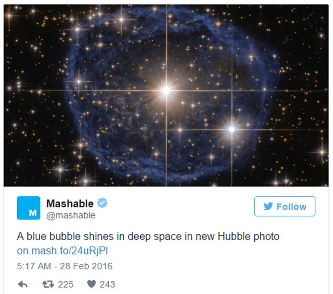 Хъбъл засне син мехур около рядка звезда (снимки)