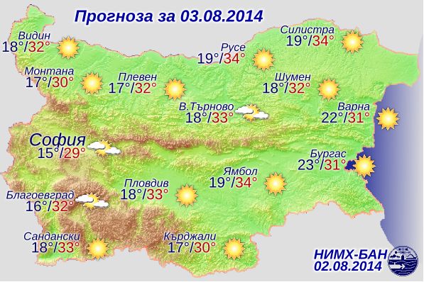 Температурите ще се повишат и максималните ще са между 29° и 34°.