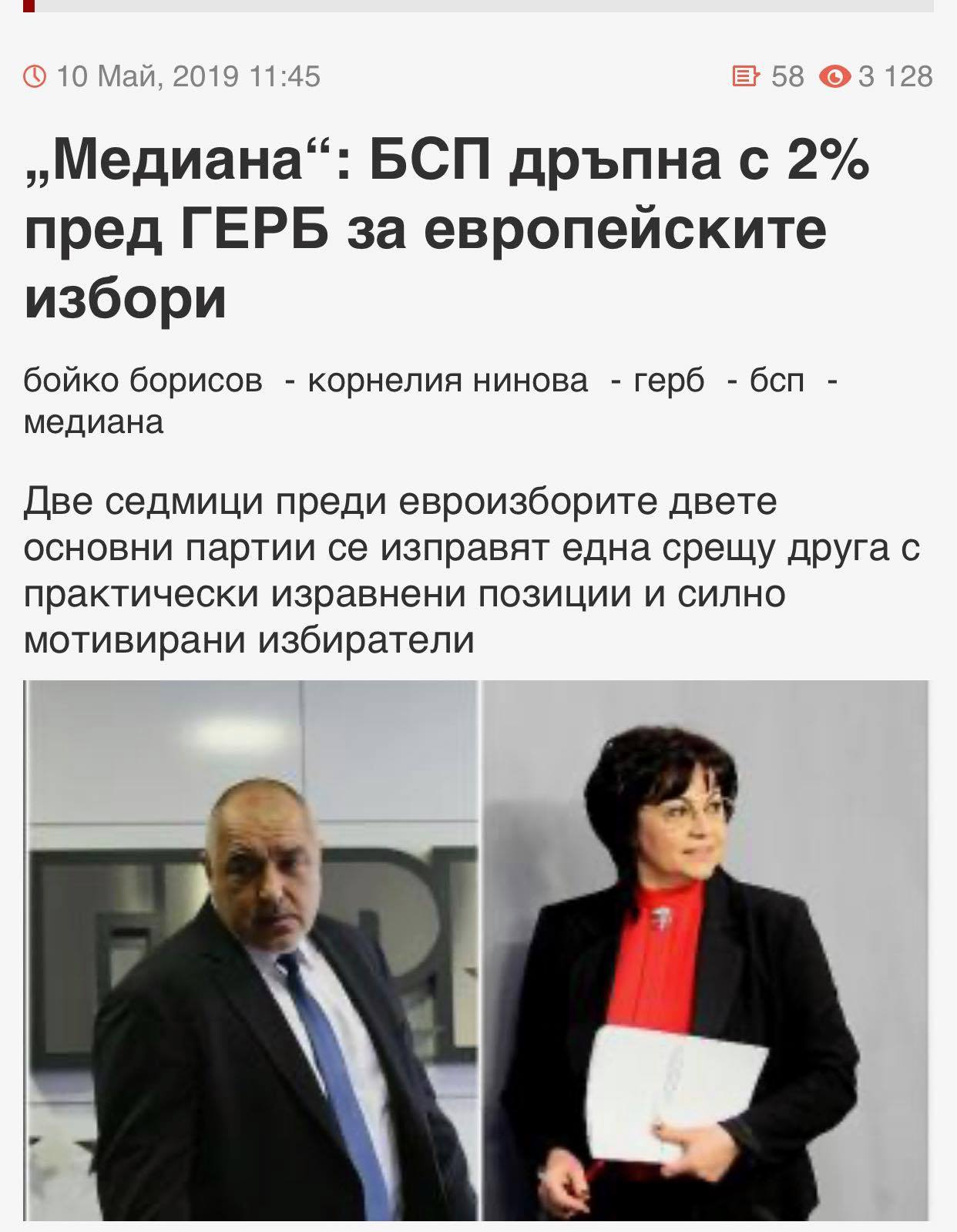 "БСП дръпна на ГЕРБ с 2%", убеждава ни Червен Кольо на 10 май 2019 г., малко преди евроизборите. Накрая ГЕРБ печели с 31 на 24.