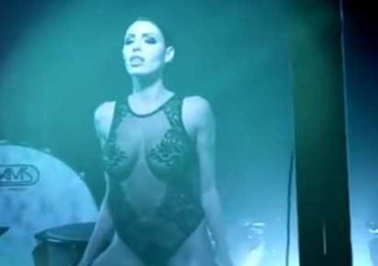 На кадрите брюнетката е по прозрачно боди, което разкрива всичките й достойнства. Въпреки че уж е облечена, феновете коментират, че дрехата не скрива почти нищо.