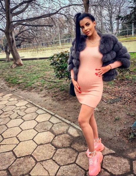 На фотоса Бисера е облечена в светло розова рокля по тялото, маратонки в същия нюанс и пухено елече в сив цвят.