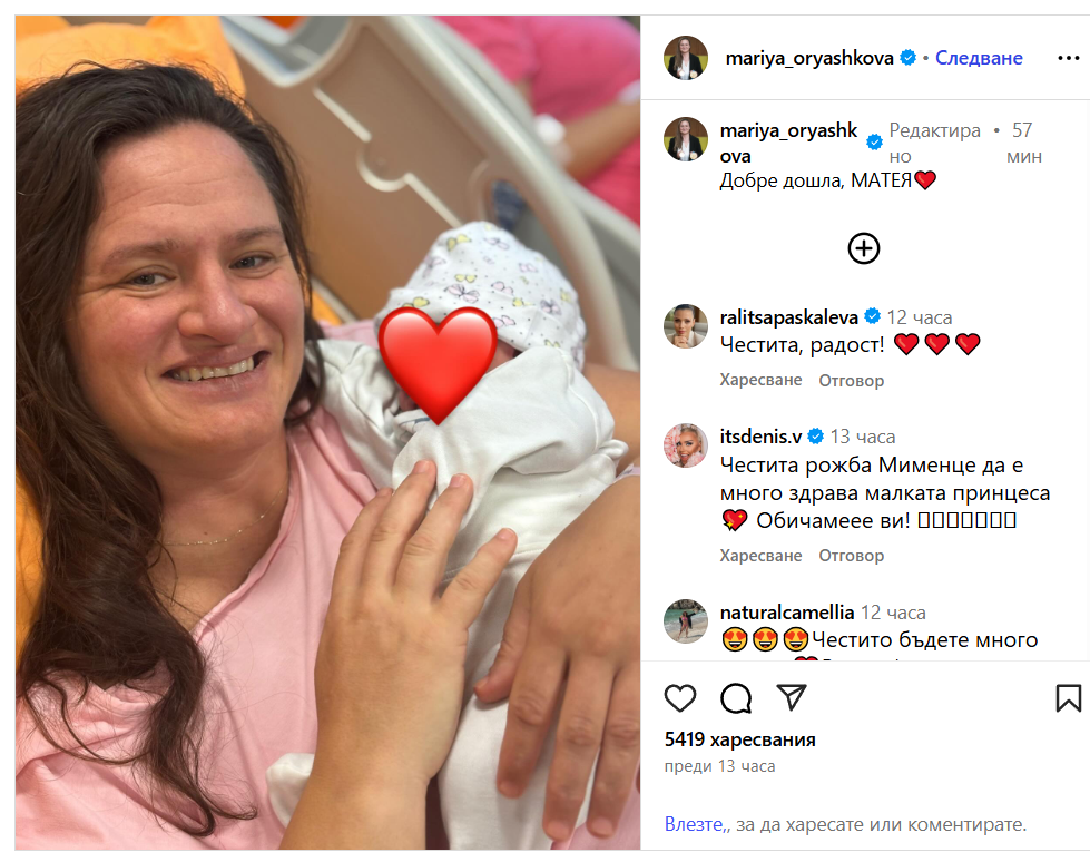 ЧЕСТИТО! Мария Оряшкова стана майка: „Добре дошла, Матея!“ (СНИМКА)