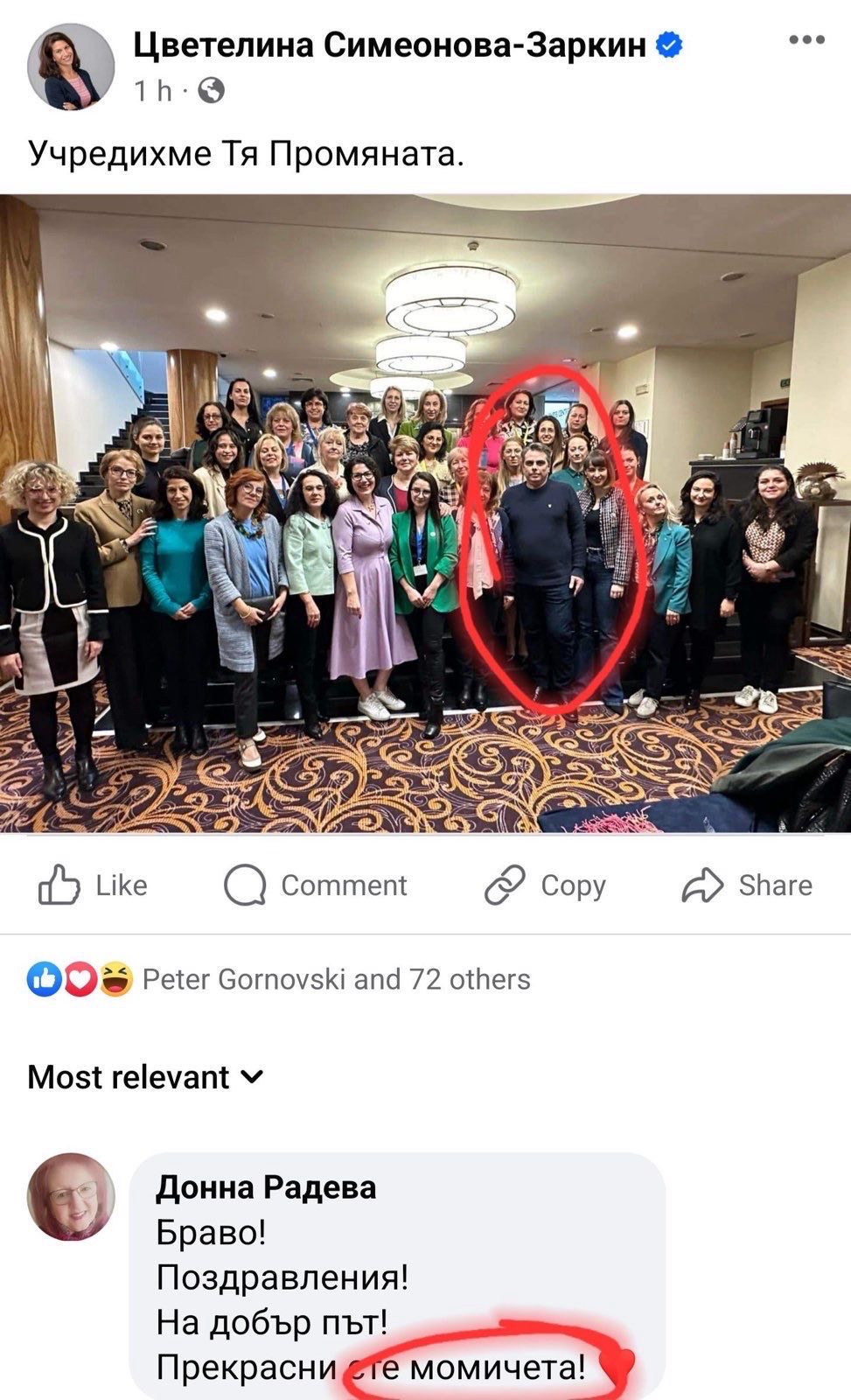 Странно защо събитието не бе уважено и от Лена Бориславова, например, а "центърът на купона" е бил Асен Василева, и дали това е някаква символика. Може би той все пак ще оглави женското ПП?