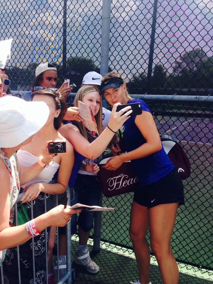 Мария Шарапова зарадва последователите в социалната мрежа "Фейсбук" с поредната весела снимка. Тенисистката се щракна в популярната поза "селфи" с фенове на тенискорта.