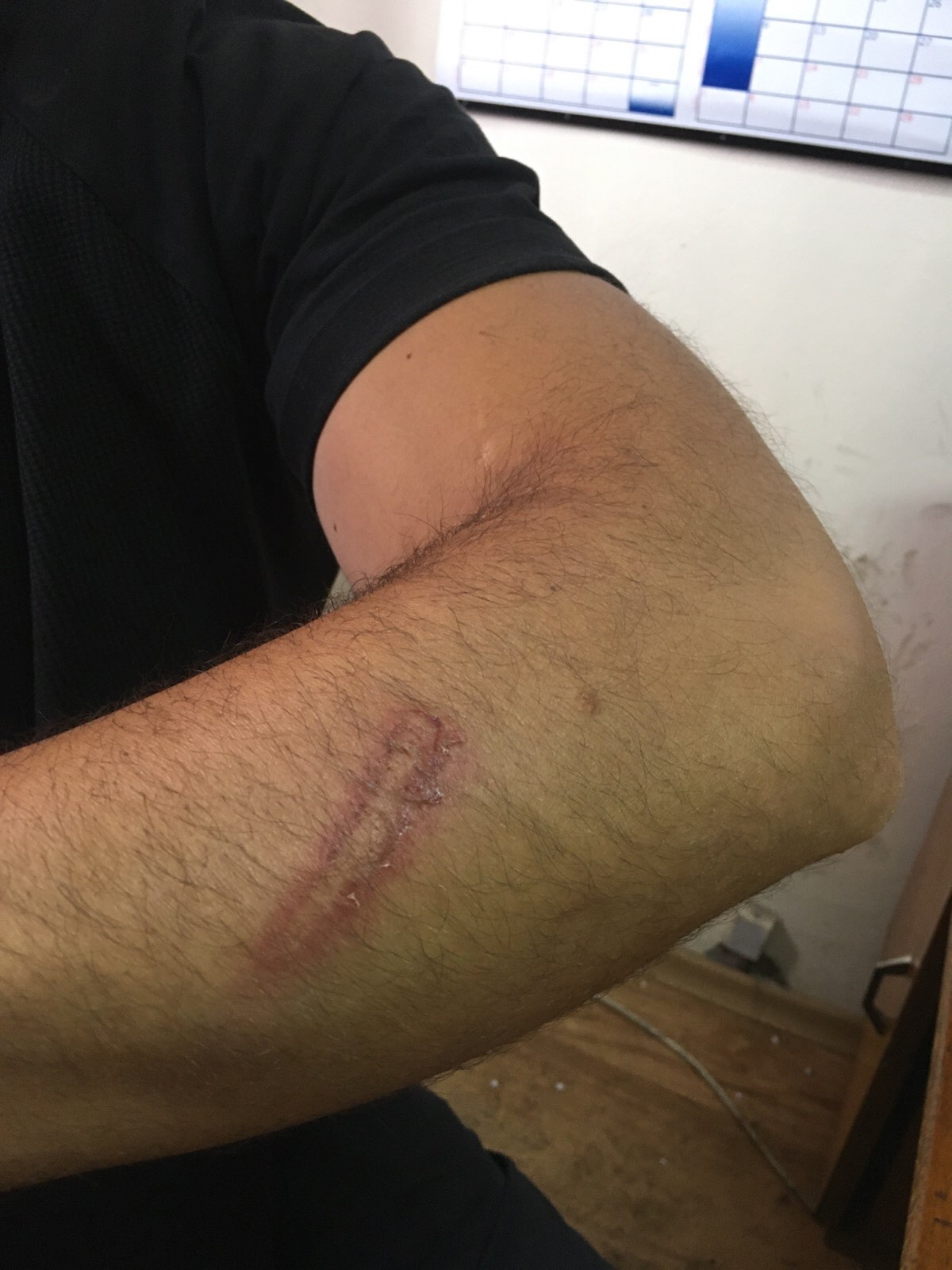 Единият от служителите е с разкъсно-контузна рана на главата и кръвонасядане на лявата ръка, другият е с разкъсно-контузна рана на ръката, засегнат е и кръвоносен съд, третият служител е с охлузни наранявания в областта на главата.Пострадало е и полицейското следово куче, то е с кръвонасядане на лявото око и ограничено движение на предната лява лапа. На служителите е оказана медицинска помощ в кюстендилската болницачрез хирургична обработна на нараняванията.