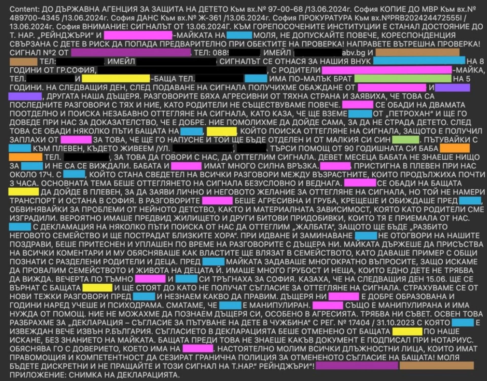 Още тогава възрастното семейство иска обяснение от дъщеря си – Албена, защо Леон е с непознати лица, всичките от мъжки пол. Бабата и дядото пътуват до София, за да изразят недоверието си към „Рейнджърите“. „Изразих опасения, че той е в нерегламентирана зависимост от хора, които нямат право да упражняват контрол върху детето, след което казах на майката, че ще направя проучването, притеснен от мъжкия пол на състава и огромната промяна в поведението на Леон", заявява в сигнала си до ДАЗД дядото. След този разговор всичко се променя. Възрастните хора с месеци не знаят нищо за 8-годишното си внуче.