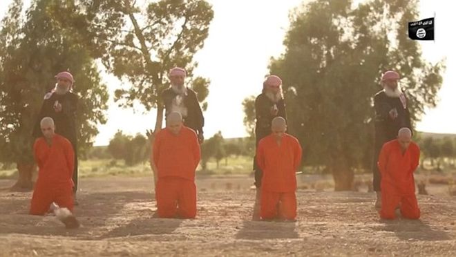 Една от жертвите е завързана с метални ограничители, след което е намушкана в гърдите от маскиран джихадист, докато втори мъж е прострелян в главата от близко разстояние. Най-ужасяващата част от кадрите показва деца и дори пенсионери, които разстрелват затворници в тила.