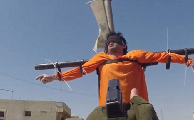 ШОКИРАЩО ЗВЕРСТВО! "Ислямска държава" показа нови, нечовешки екзекуции - деца разстрелват от упор разпънати на кръст затворници (ВИДЕО/СНИМКИ 18+)