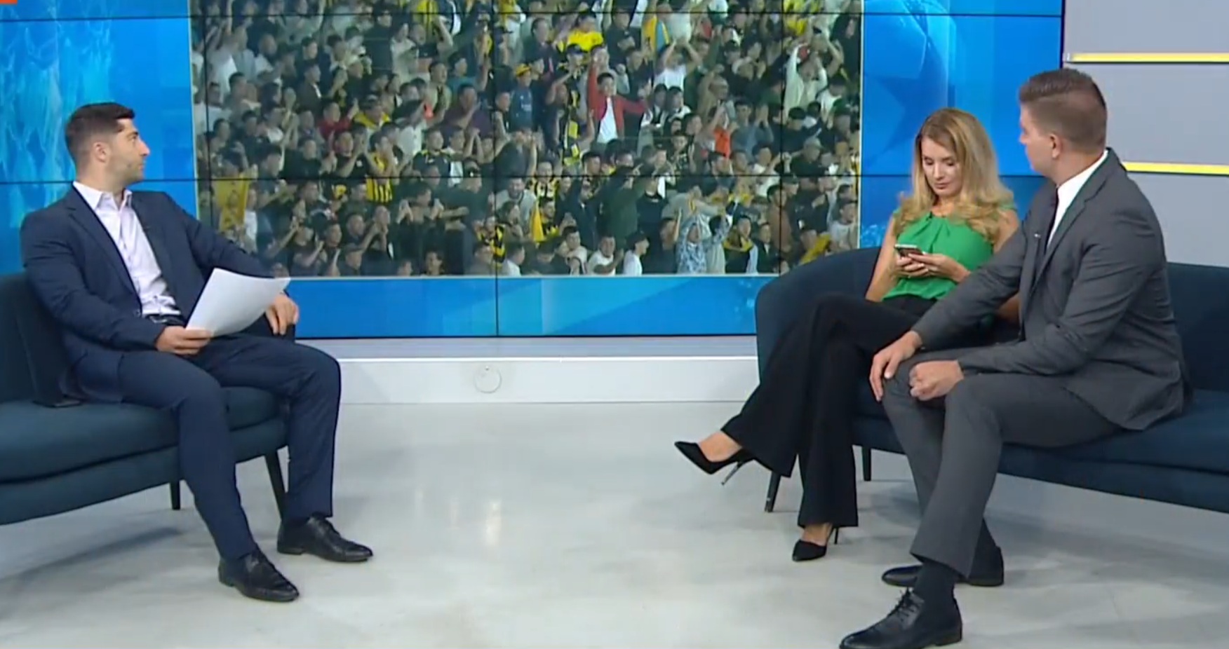 Странното поведение на журналистката се случи, докато колегите й Симеон Иванов и Бюлент Мюмюнов обсъждаха спортните новини. На екрана вървяха кадри от плейофните мачове в Шампионската лига, а Иванов и Мюмюнов коментираха успехите на казахстанския Кайрат, кипърския Пафос и норвежкия Бодьо Глимт.