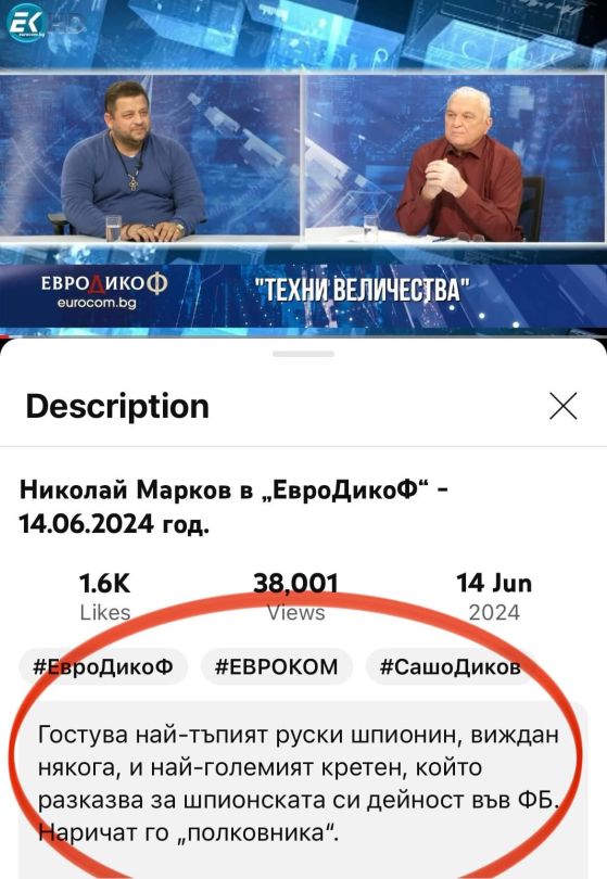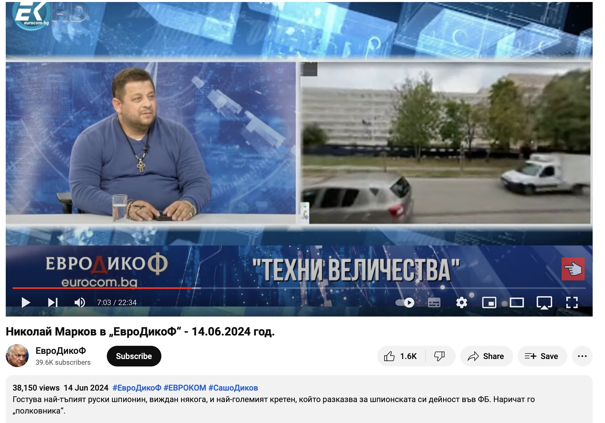В официалния YouTube канал на "ЕвроДикоФ" анонсът за участието на Марков, който все още стои 4 дни по-късно, е прелюбопитен, пише Офнюз.
