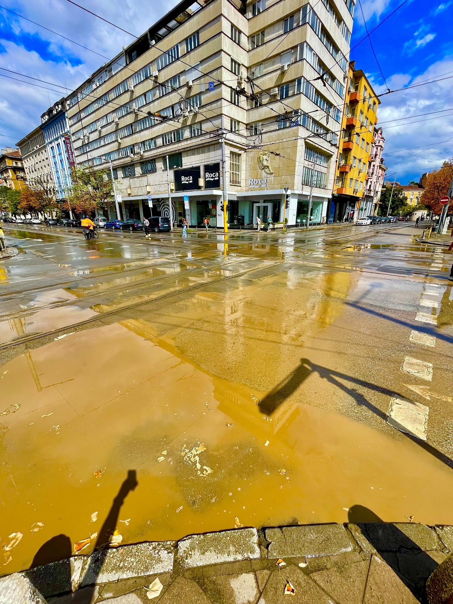 Миеш кафявото от спасителите ни...", написа Димчев в социалната мрежа и публикува снимки от кафявата вода в центъра на София.