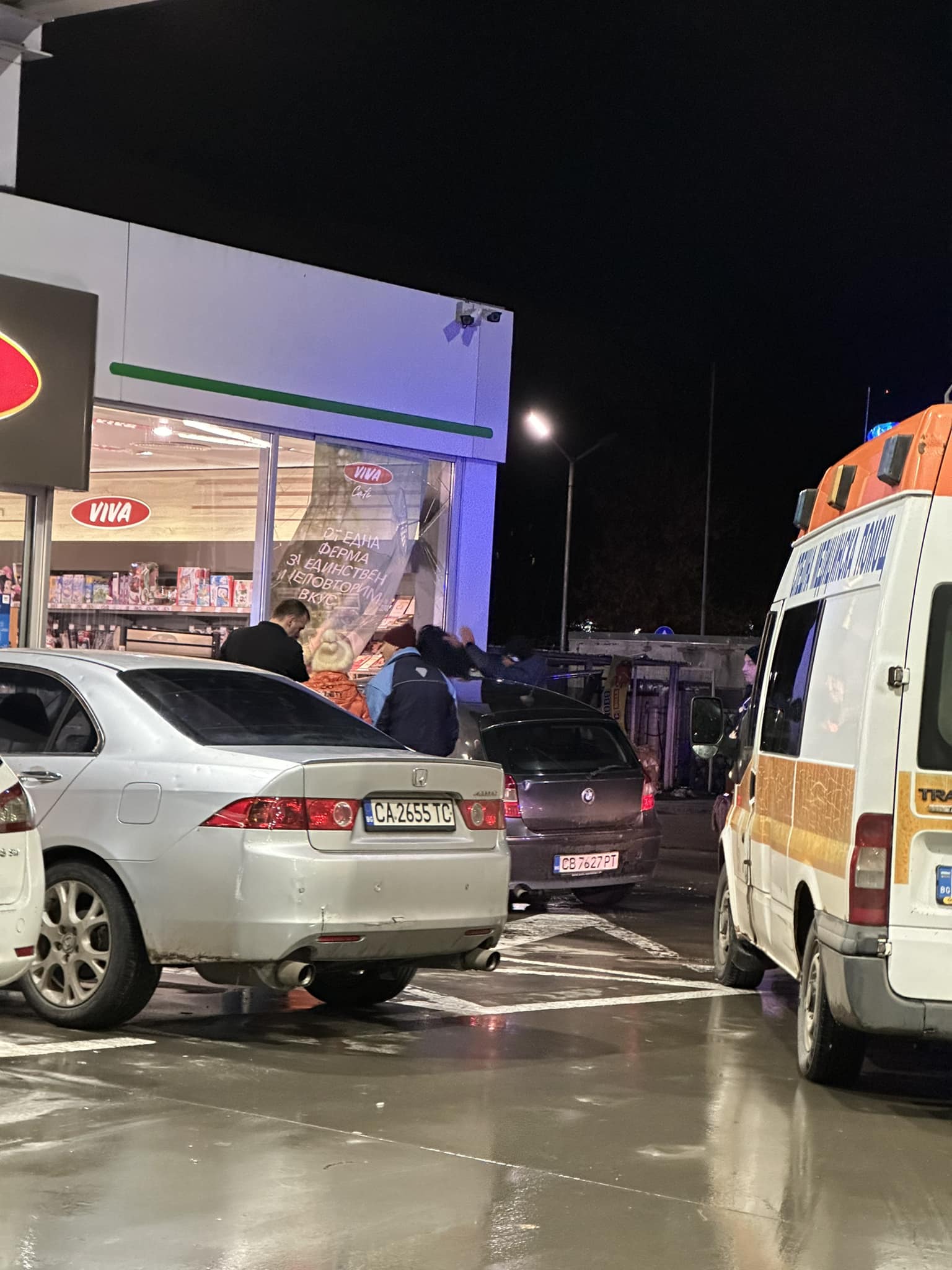 Шофьор на БМВ е влетял с превишена скорост във витрините на бензиностанция в София, съобщават очевидци във Фейсбук групата "Катастрофи в София".