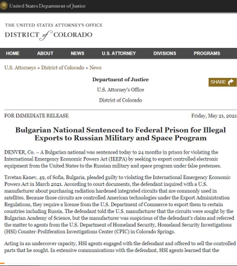 ШПИОНСКИ СКАНДАЛ: Осъдиха българин на 24 месеца затвор в САЩ за незаконен износ на стоки за руската военна и космическа програма