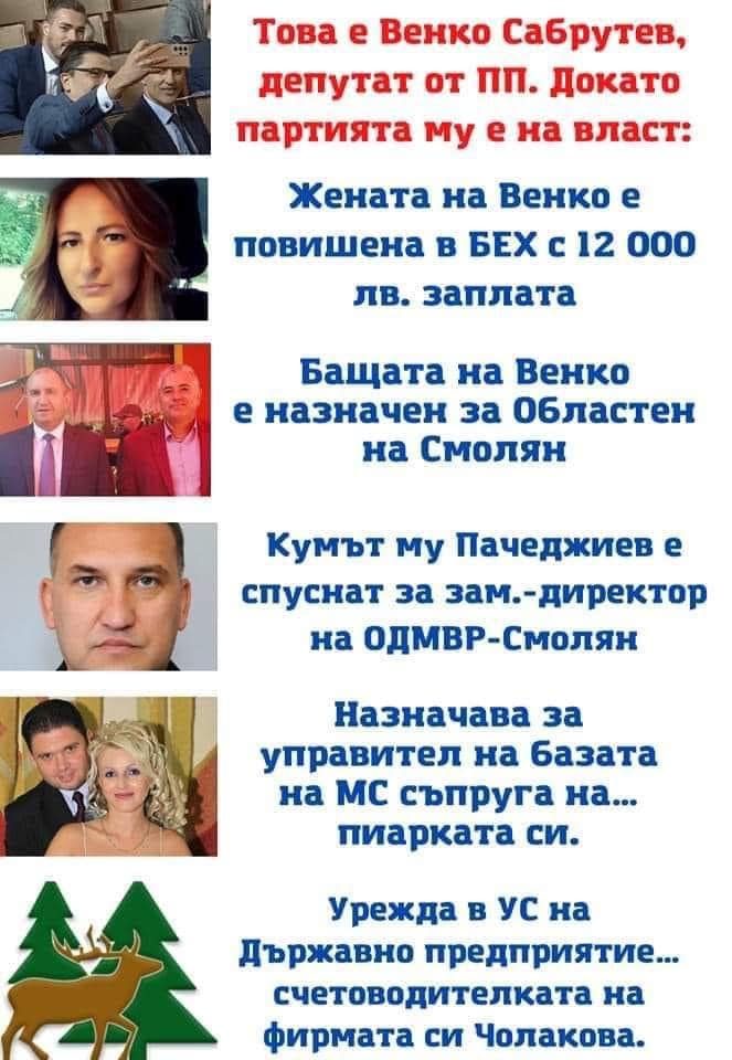ШУРОБАДЖАНАЩИНА: Цялата рода на Венко Сабрутев от ПП се уреди на апетитни постове - жена му прибира 12 бона от БЕХ, баща му е областен на Смолян (СНИМКА)