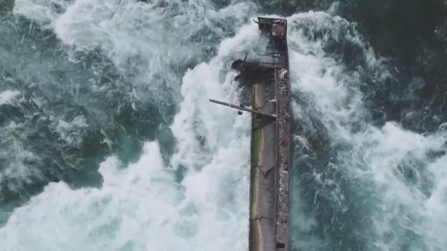 Потънал преди 101 години, корабът "Айрън Скол" е на косъм да падне от Ниагарския водопад. Той се приближи на 50 метра от ръба.